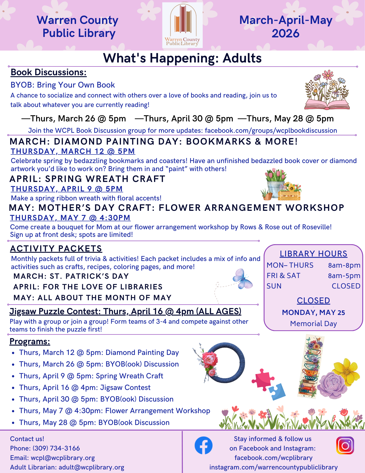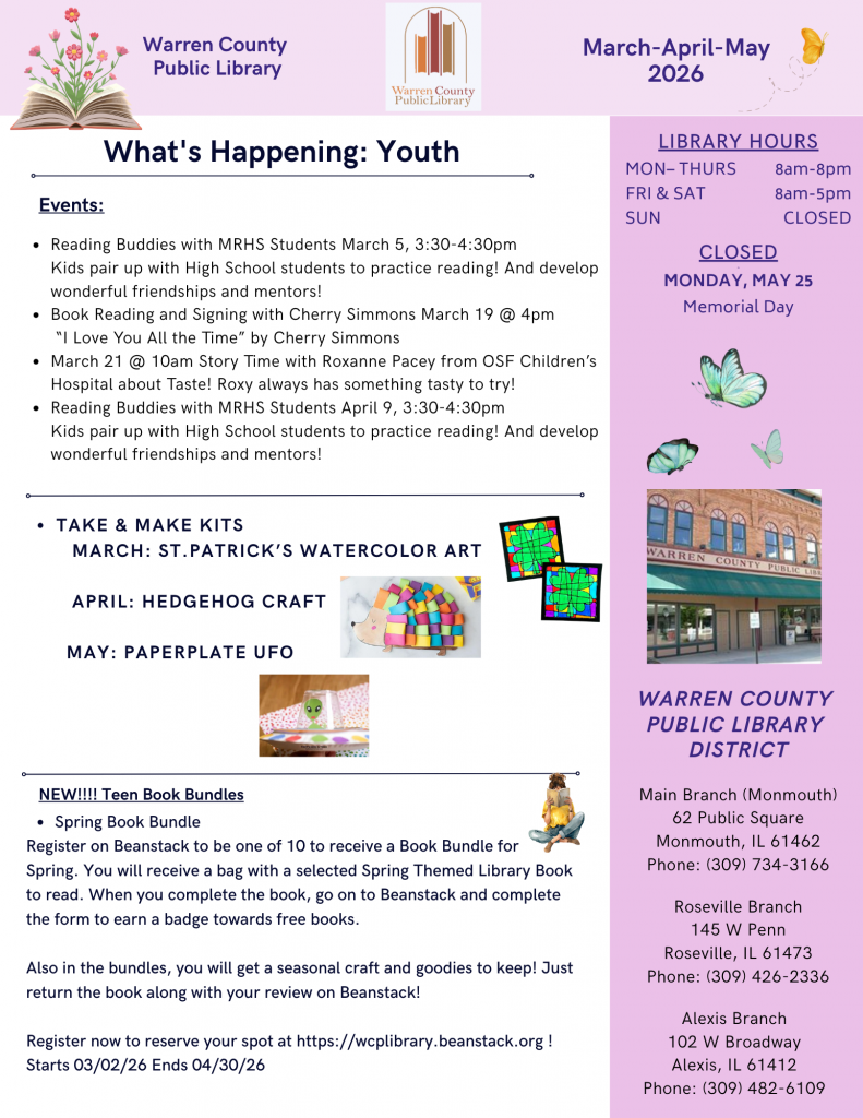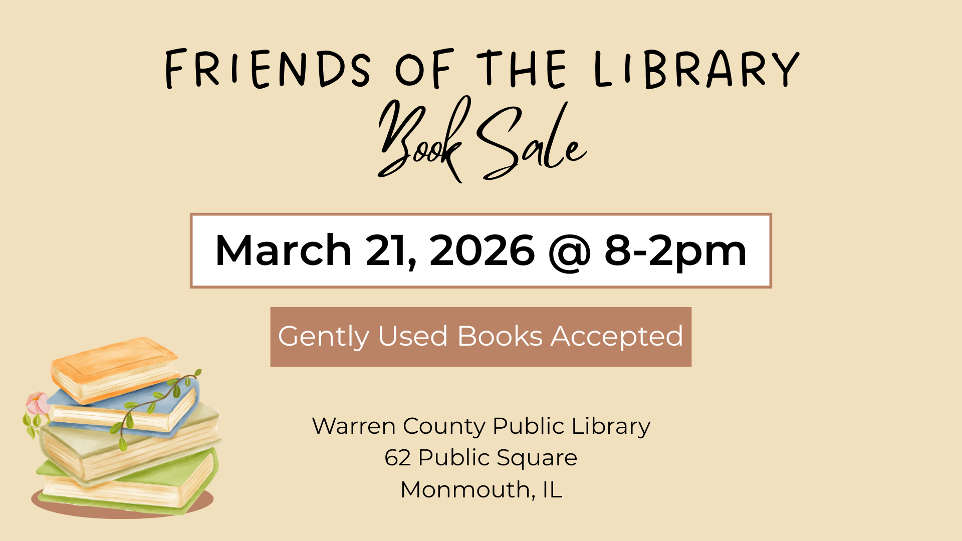 The Friends of the Library spring book sale Saturday, March 21 from 8am to 2pm!