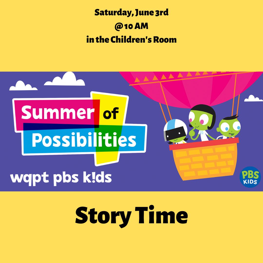 Join us for a special story time Saturday, June 3rd at 10 AM presented by WQPT PBS as a part of their Summer Outreach program. This program is intended for children 0-5 years of age and their siblings.