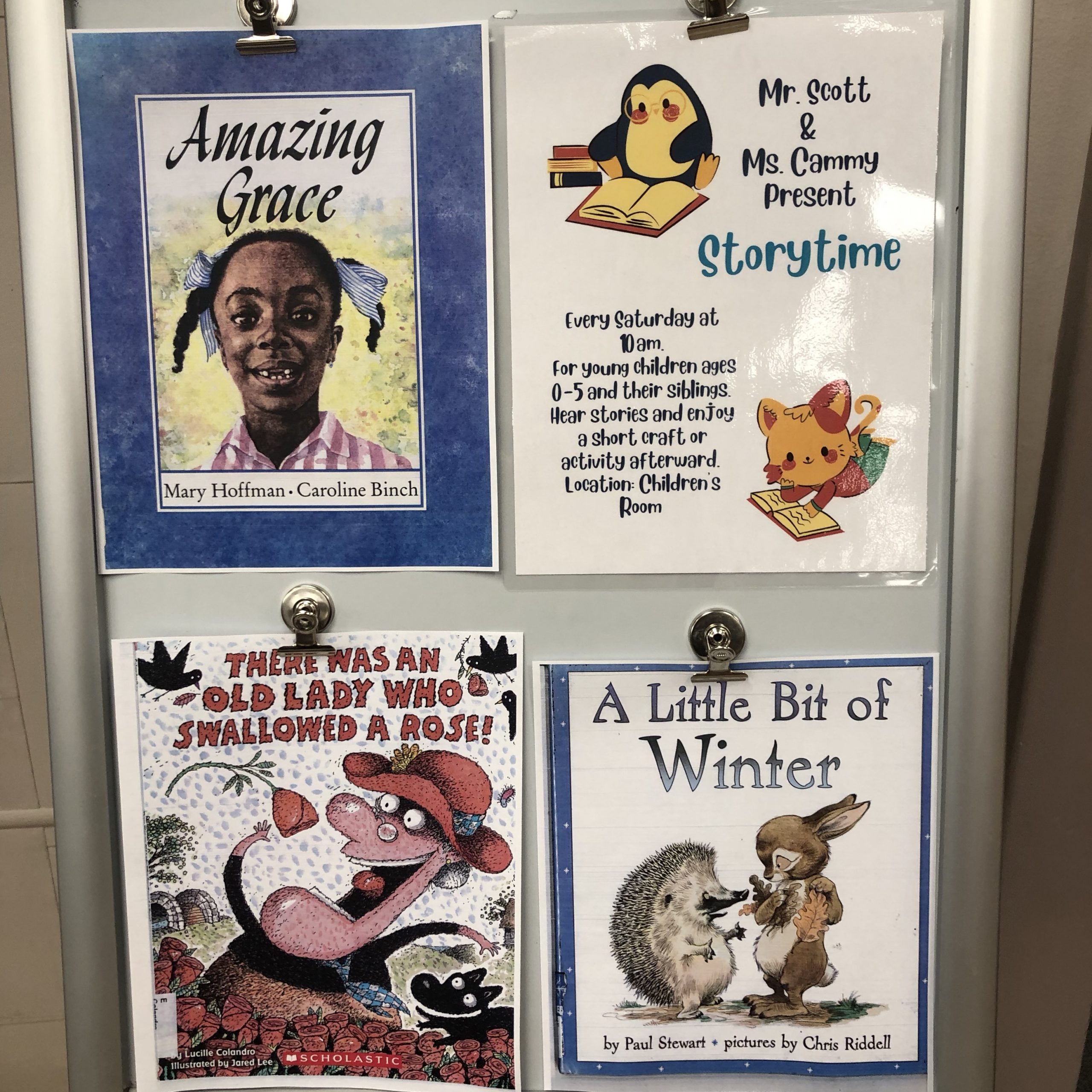 Join us on Saturday, February 04th at 10 AM in the Children’s Room for Storytime. Miss Cammy will be reading There Was an Old Lady Who Swallowed a Rose by Lucille Colandro to celebrate Valentine’s Day, A Little Bit of Winter by Paul Stewart to celebrate National Hedgehog Day, and Amazing Grace by Mary Hoffman to celebrate Black History Month. There will be a special guest appearance, songs, and activities too.