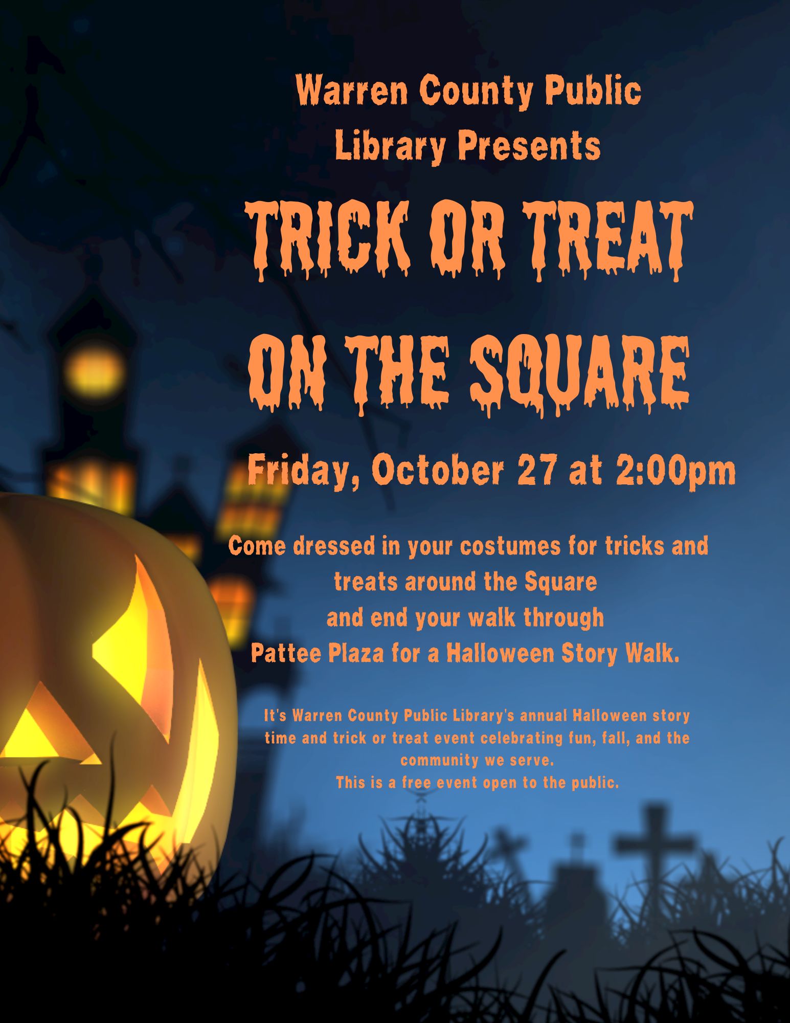 Enjoy Trick or Treating with local Downtown and Small Monmouth Businesses around the square and end the event with a Story Walk through Pattee Plaza. We will be featuring the story, Room on the Broom by Julia Donaldson. Event starts at 2:00pm. Come dressed for Trick or Treating!